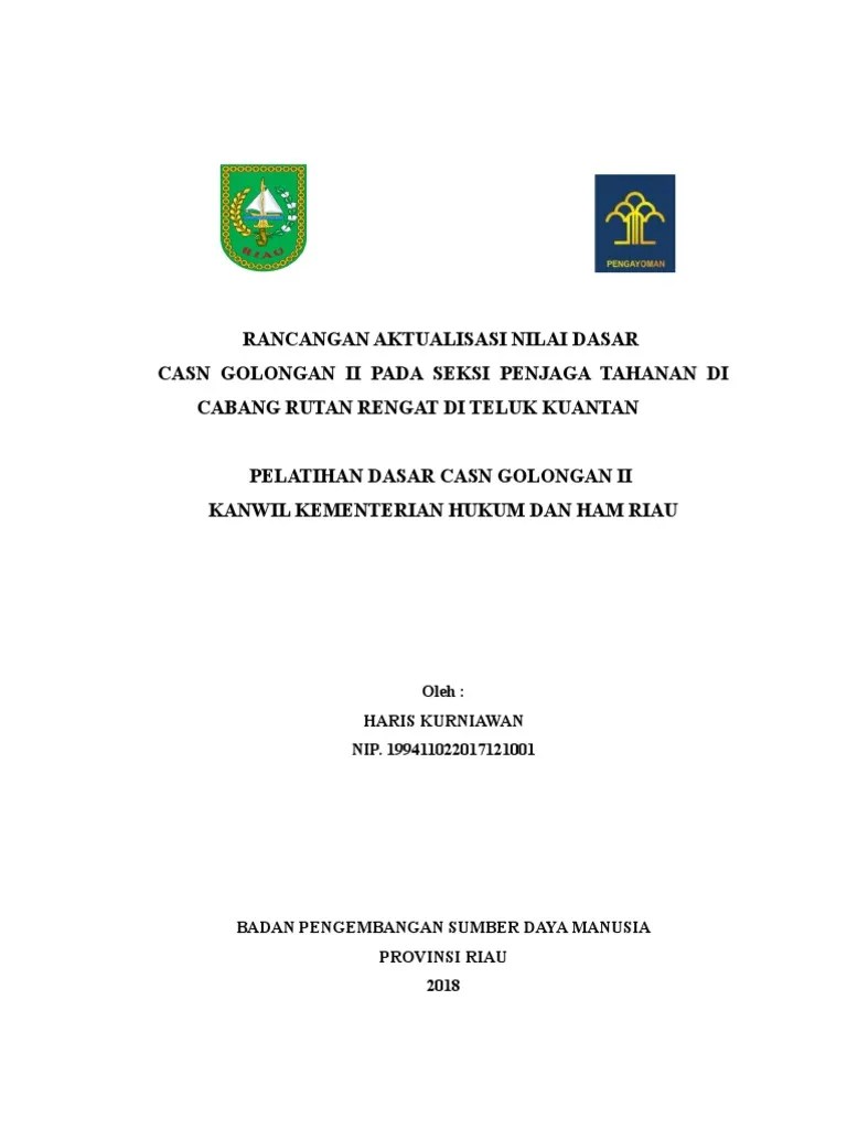 Contoh Judul Laporan Aktualisasi Golongan 2 D Lingkungan Kerja Lapas - 2 : Laporan aktualisasi latsar cpns golongan ii.